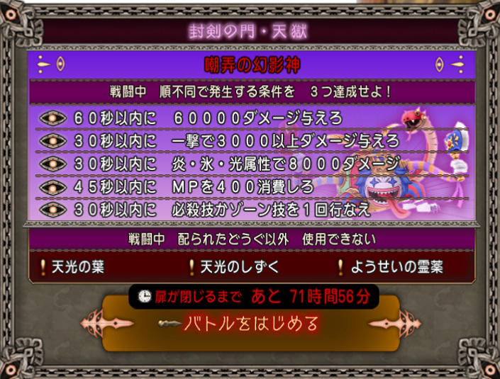 他は基本、制限時間なしでのバトルということで