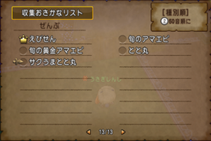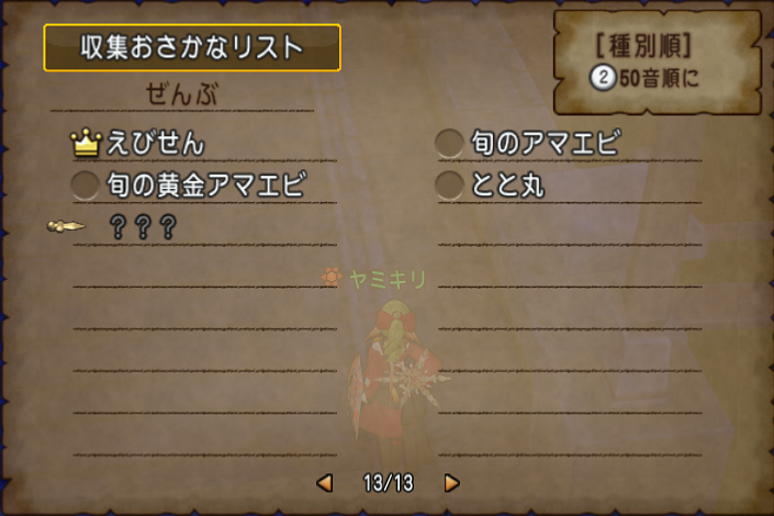 おさかなリストのキングサイズの種類を稼いでいたときに