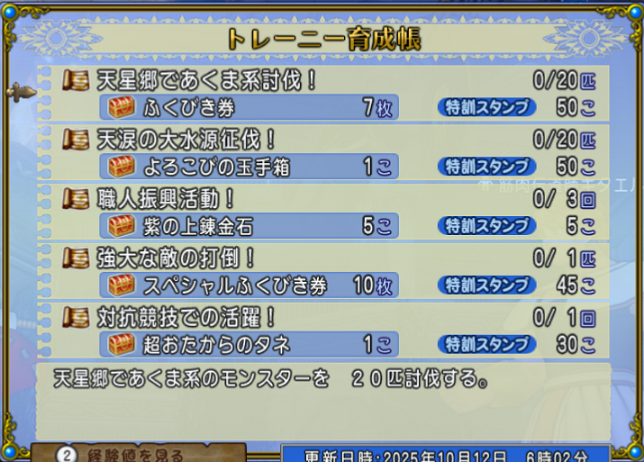 ・天星郷であくま系のモンスターを 20匹討伐する。