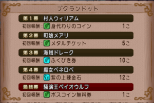 身代わりコイン、メタルチケット5、ふくびき券10、紫の上錬金石12、ボスコイン無料券