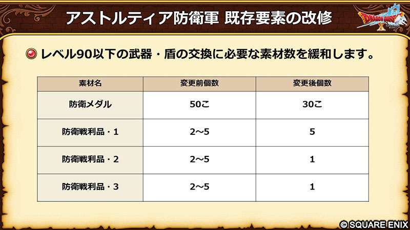 ・レベル90以下の武器・盾の交換に必要な素材の緩和