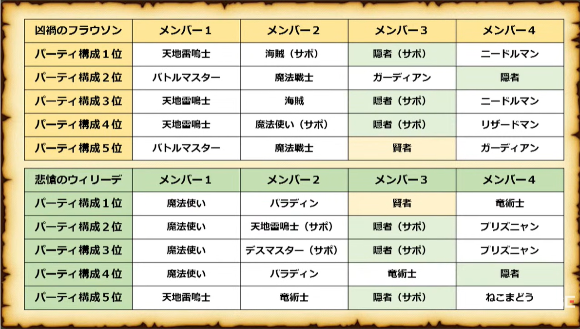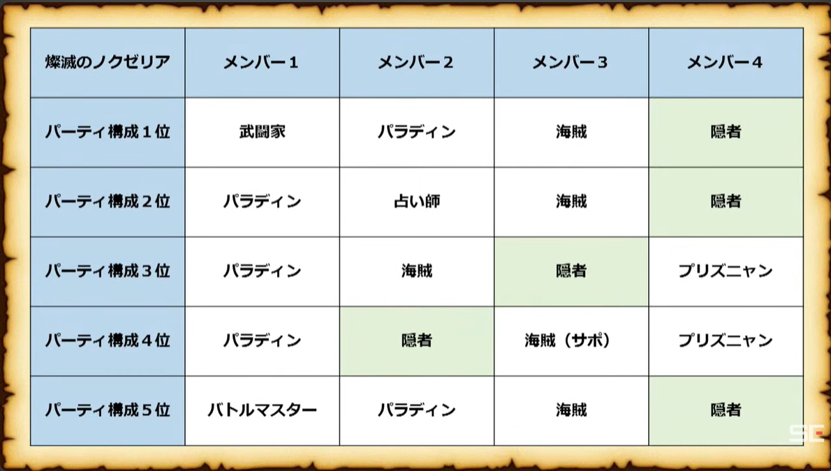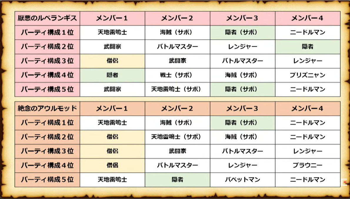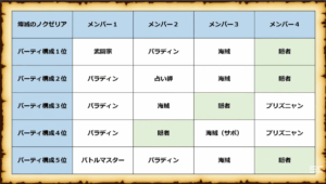 正式な攻略PTだと僧侶が含まれるといった結果にも。