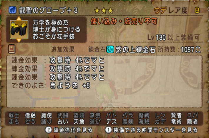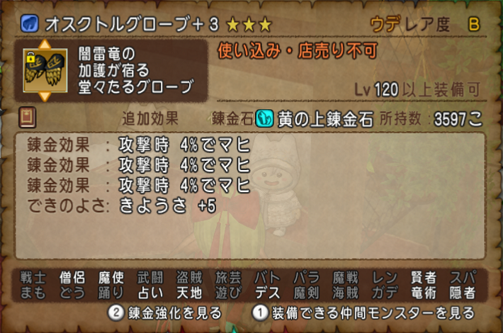 腕装備のスパングルグローブのマヒ埋めの使い方としては