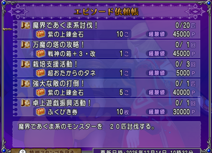 ・魔界であくま系のモンスターを 20匹討伐する。