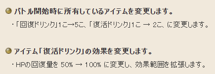 1人につき、回復ドリンク1個から5個に増加したことにより
