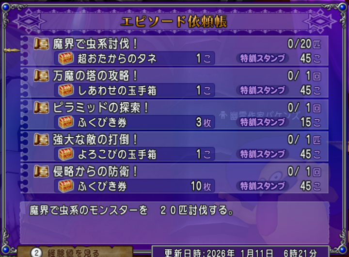 ・魔界で虫系のモンスターを 20匹討伐する。