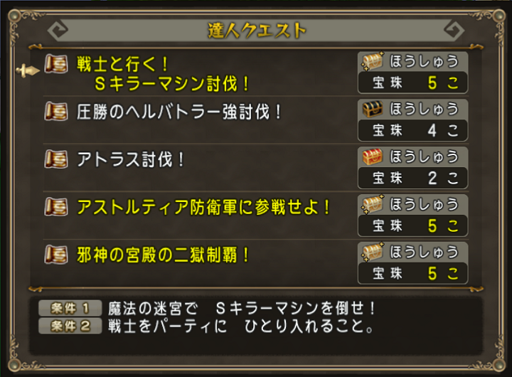 達人クエストがコチラ。