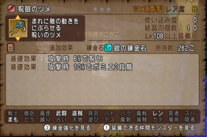 呪眼のツメだと天獄のボミエお題でも便利そうな性能でした。
