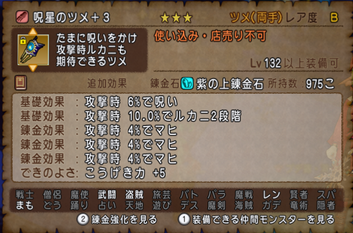 Lv132呪星のツメだとルカニ効果がツメ特技との相性が良くて、